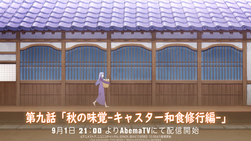 9/1配信予定の『衛宮さんちの今日のごはん』第九話「秋の味覚-キャスター和食修行編-」予告映像が公開