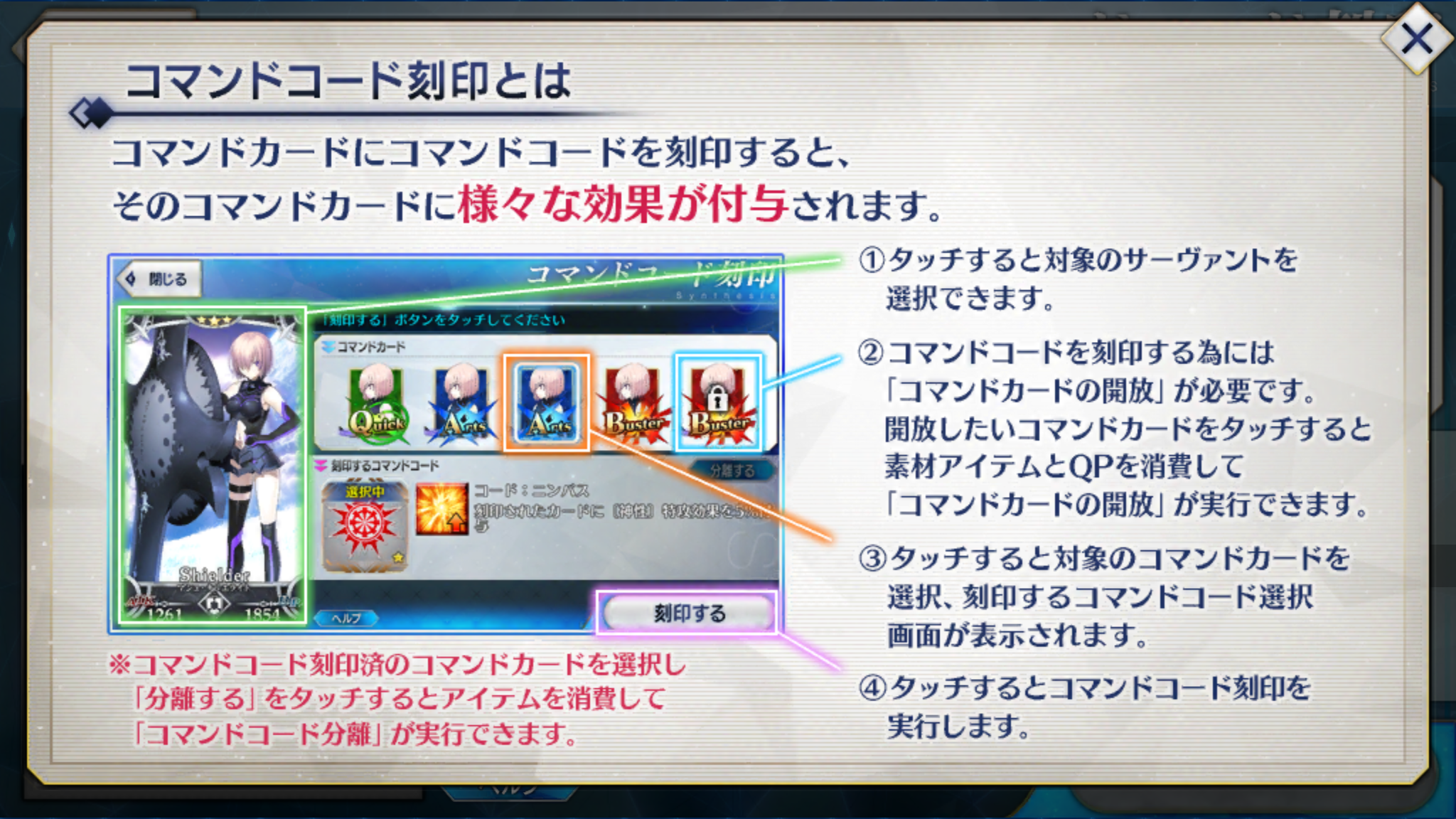 この新システムは各サーヴァントのコマンドカードに「コマンドコード」を刻印すると