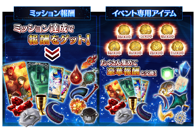 クエストクリア時に「各クラスの対峙クラスの印章」のドロップ獲得数がアップします。