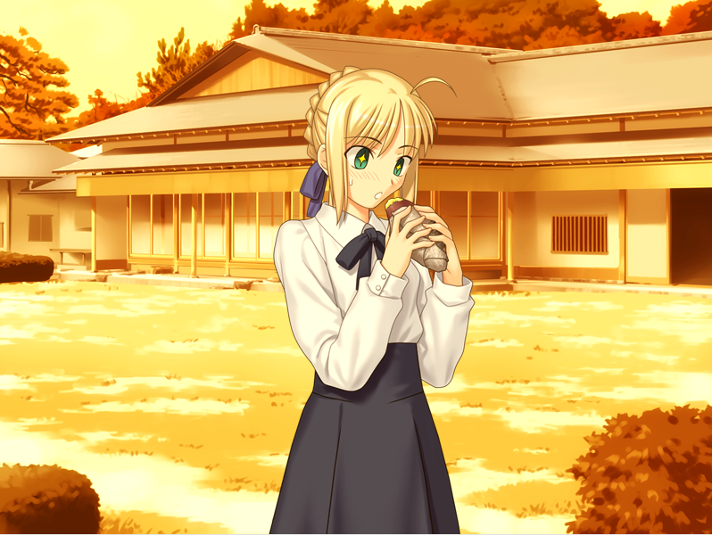 芋ほりということでいつもの装いとは違いジャージ姿のイリヤとセイバー。
