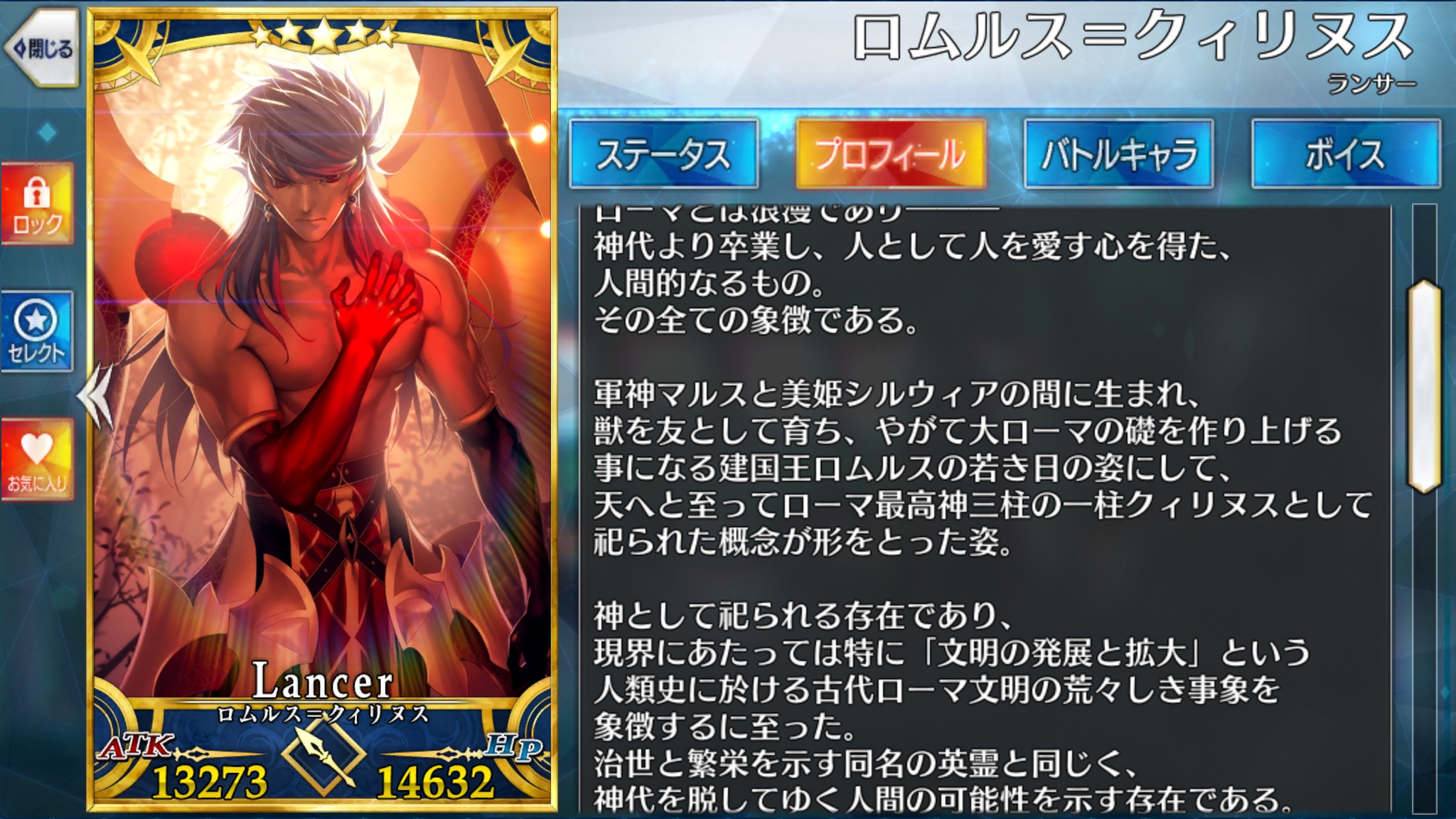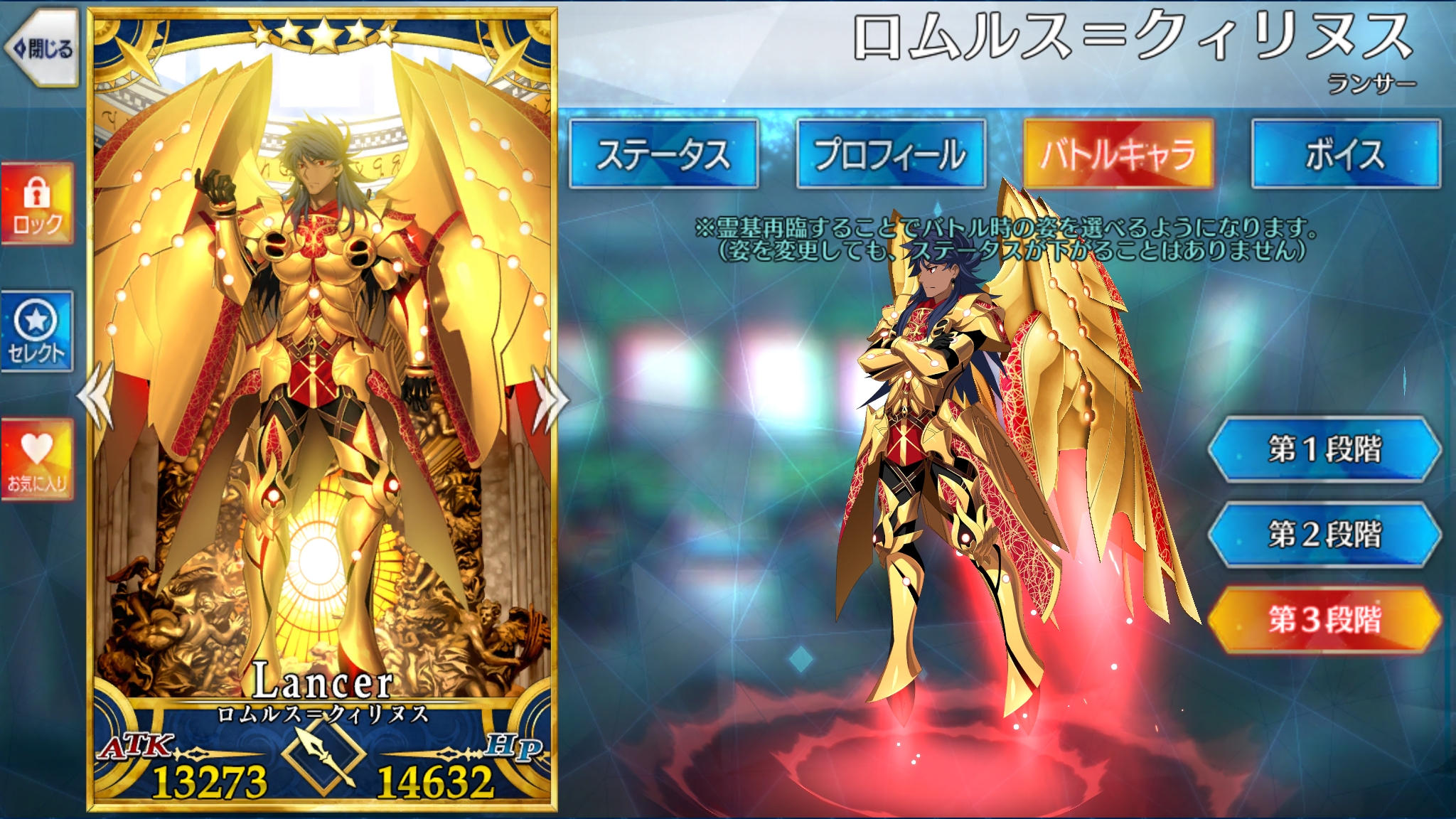 ロムルス=クィリヌスの最終再臨完了。戦闘モーション等各種データ記載しました 2020年04月17日 カテゴリ:宝具演出 ローマ!いつかの高難易度クエストみたいな、まさにローマ特性を付与すればするだけ宝具威力とクリティカル威力が上がる浪漫戦士話に聞くと特性乗っければランサーの宝具最高威力なんだとか。攻撃モーションも第1,第2再臨の服装もカッコイイので見た目はこちらにしたい気持ちもあるんですがやはり第3再臨のEX攻撃、『射殺す百頭・羅馬式』のカッコよさにはやられちまったんだよなぁ…宝具1でもなんとか戦えますがやっぱり重ねたいネ コメントする コメントフォーム 名前 コメント 記事の評価 リセット リセット 顔 星 情報を記憶 コメントを投稿する 「宝具演出」カテゴリの最新記事