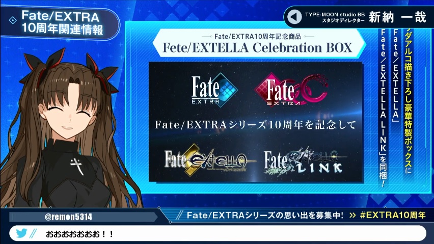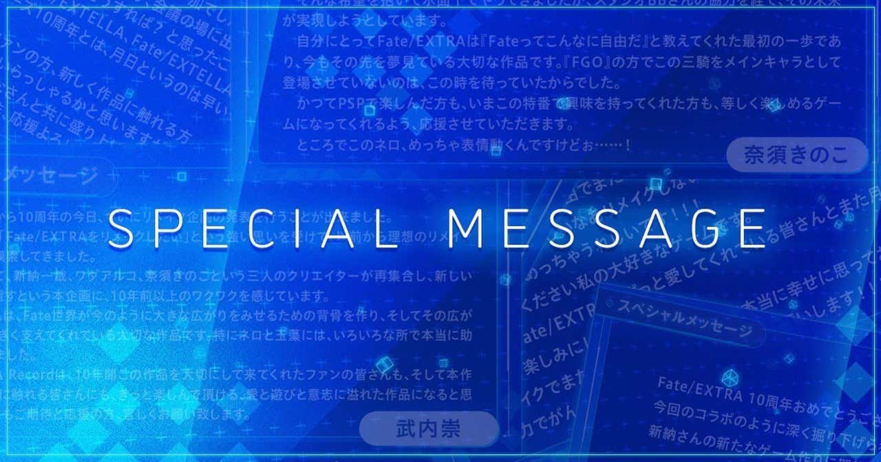 『Fate/EXTRA』シリーズ10周年記念生特番にお寄せいただいたスペシャルメッセージを、こちらでもご紹介します!https://t.co/H7VJlNVrWE