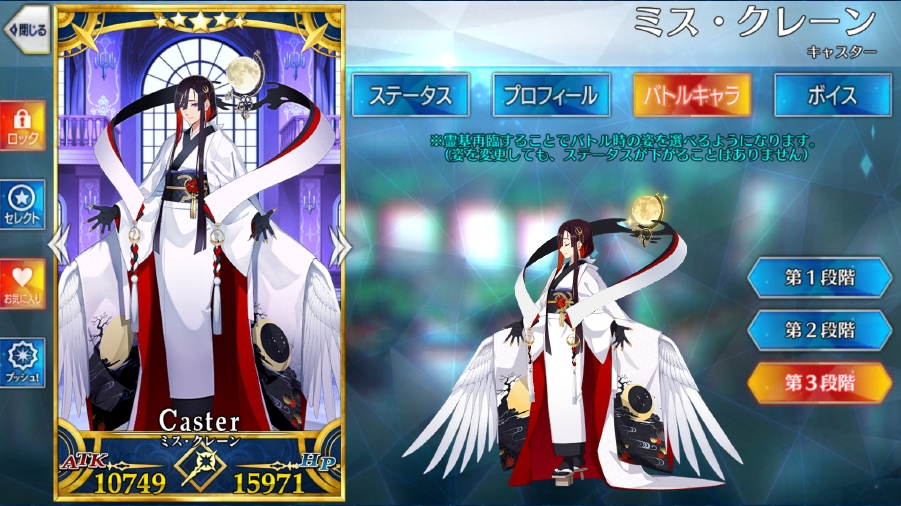 型に嵌れば上手く回転できそうですが宝具発動にスター20が必須。S1で霊衣を持っている鯖1騎につきスター獲得10個取得を持っており、一応簡易霊衣(未解放)でも発動するので狂武蔵とラムダでも発生可能。システムに組み込むにしてもそれでも10個。後衛に帰る時は一番後ろに配置され、後衛がいない時に発動すると帰った後次ターンすぐ現れる動作。