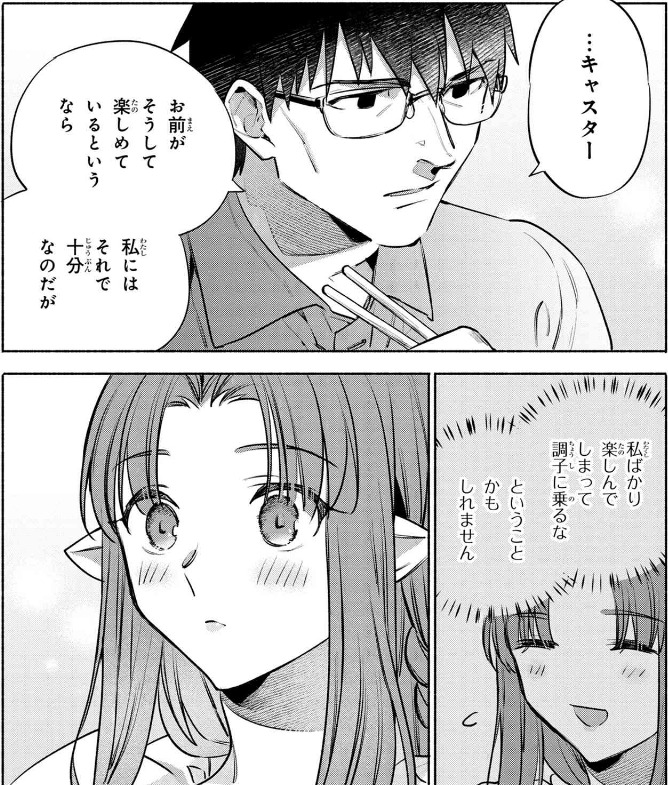 夫婦水入らずの場面は度々挟むことはありますが、まさか1話まるごと葛木夫妻だけに使う回くるとは…!こうして普通にデートしてると普通で一般の美人夫婦ですね。夫のためにオシャレしたり、夢中に買い物に行ったり、葛木先生に料理が日々上手になっていくことを褒められたりとただただキャスターが幸せな回ですなー。苦労ばかりの人生だったキャスターでしたからこんな幸せ回があってもいいですよね。