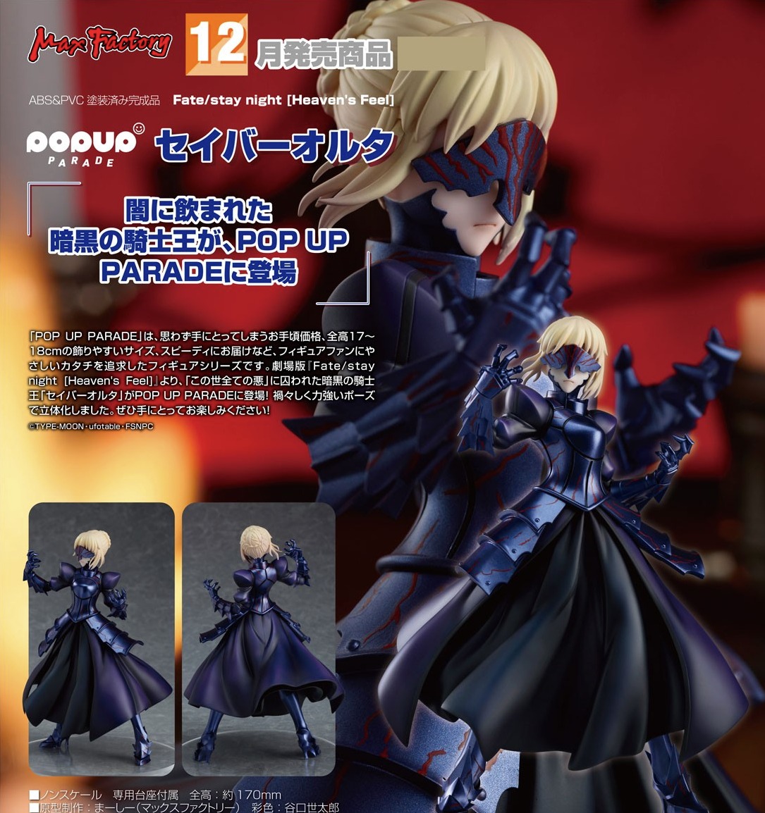 劇場版『#Fate/stay night [Heaven's Feel]』より、暗黒の騎士王「セイバーオルタ」がPOP UP PARADEに登場!
