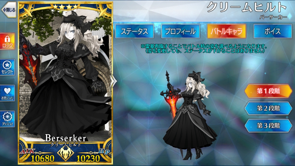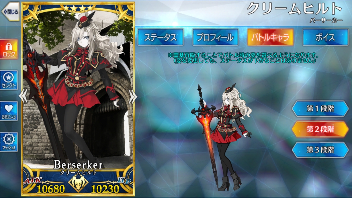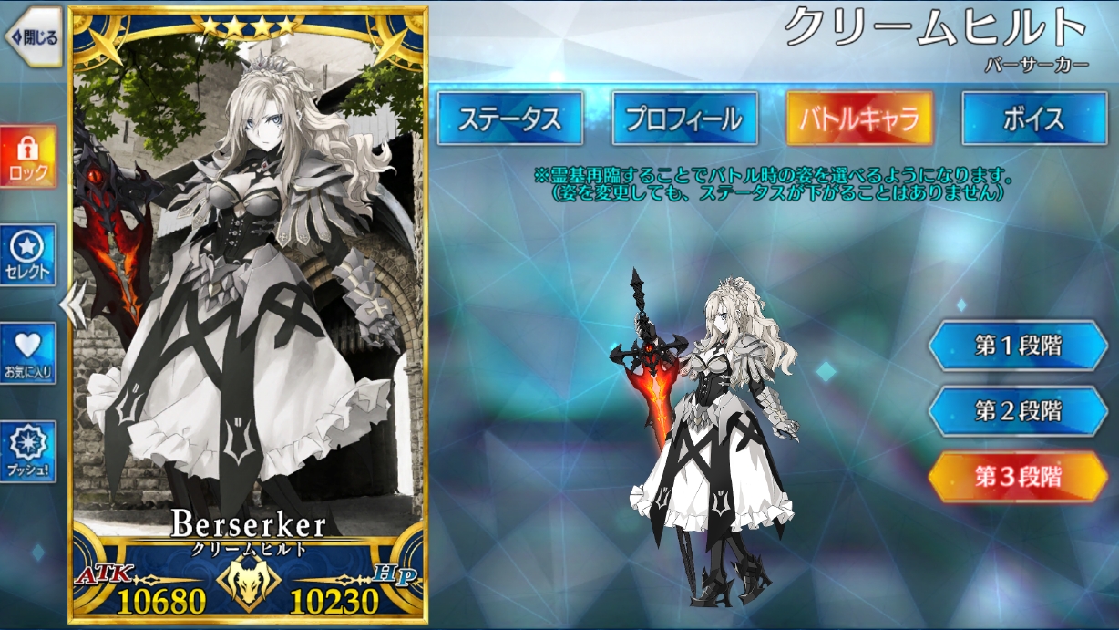 能力のほうも星4詐欺レベルの破格の強さ。NP50増加持ちのバーサーカーは不規則編成周回などで大いに役に立つのでいいですね。竜殺しレベルは夫には劣るものの宝具だけは向こうもOCしないと上がらないので大体同等。さらに特効も回復もあり。回避が無いのがバーサーカーには辛い所ですが…ほら、そこは適当にタゲ集中投げればいいのだよ。