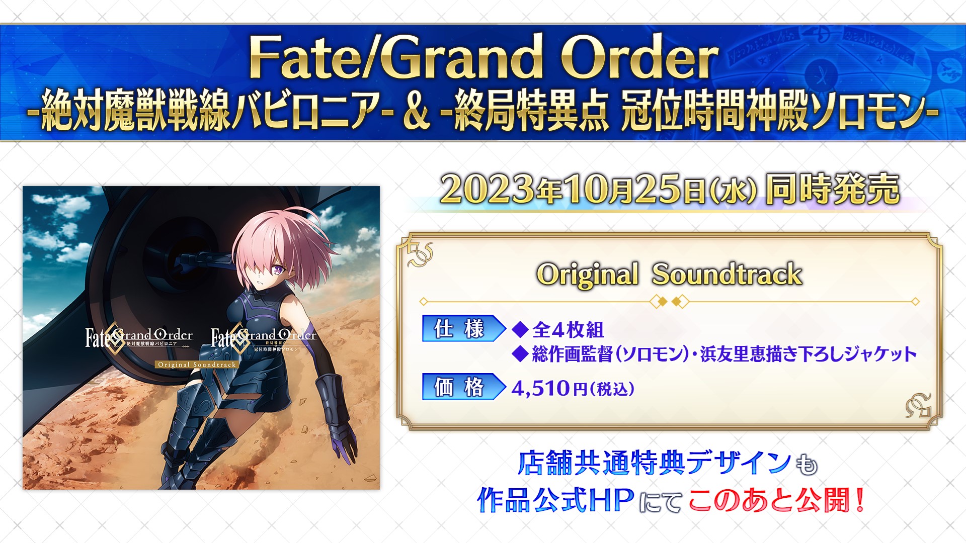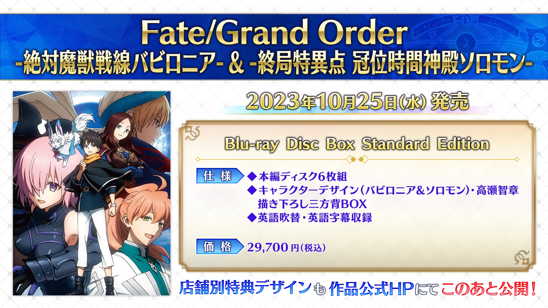 10月25日(水)発売「Fate/Grand Order -絶対魔獣戦線バビロニア- & -終局特異点 冠位時間神殿ソロモン-」 Blu-ray Disc Boxスタンダードエディション&OSTのジャケットイラストを公開!