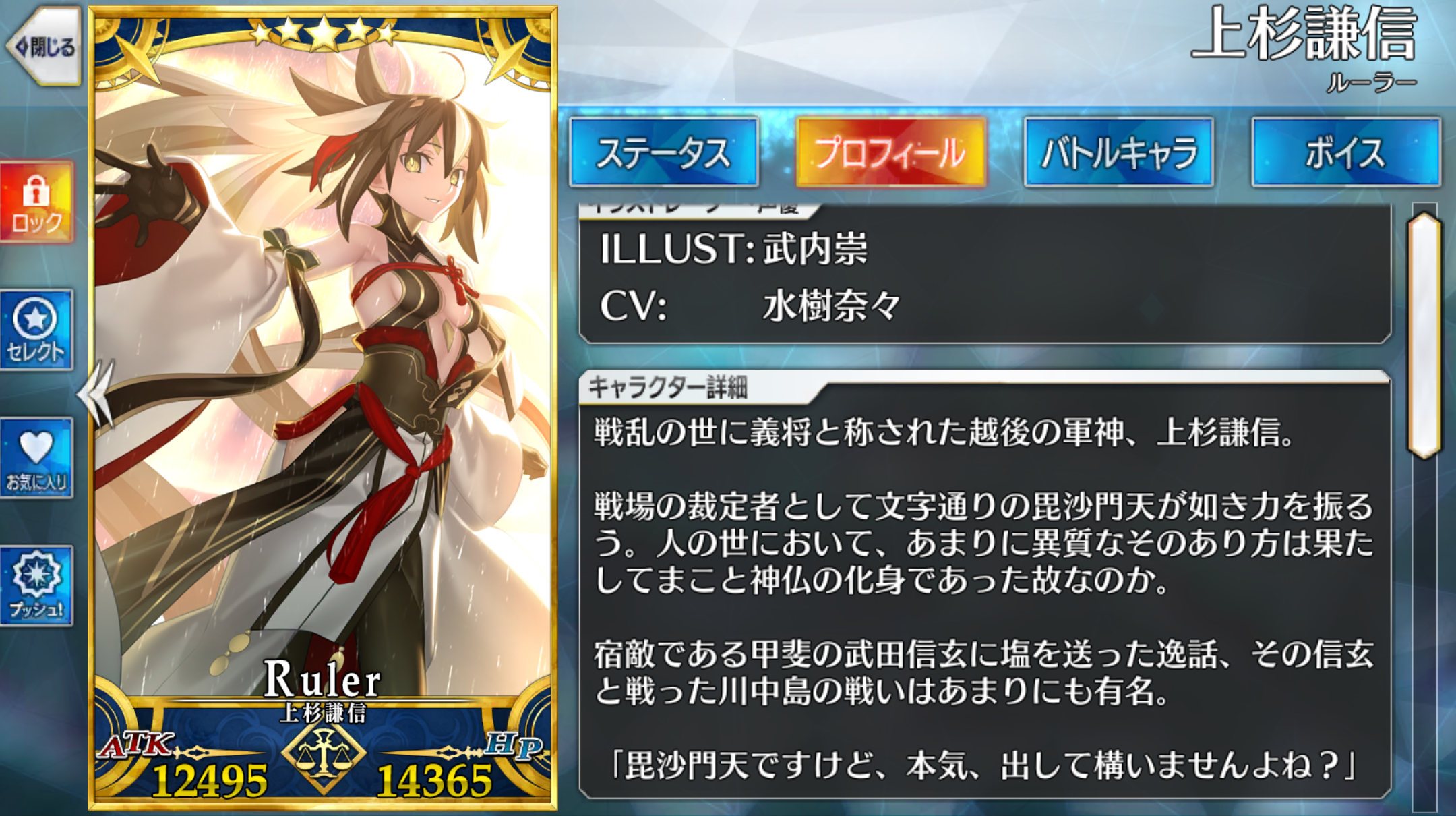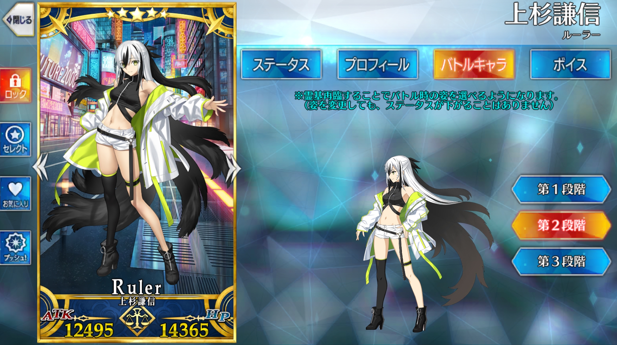 | 地、混沌、中庸、女 サーヴァント、人型 、ヒト科、騎乗、神性、浮遊(第3再臨) | ||||||||||||