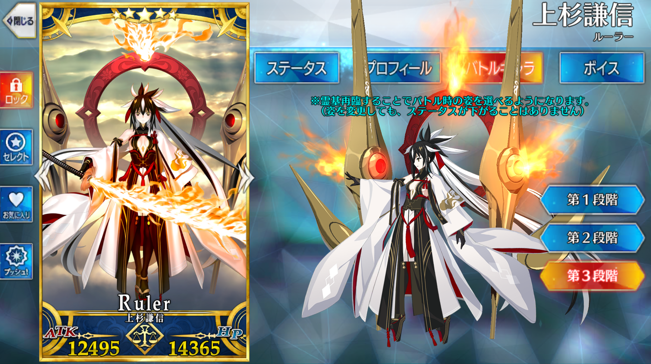 晴信のスキル2が赤き焔に対し謙信は白き焔、内容も似たような感じで二人が対になってるような感じがまたええですなぁ