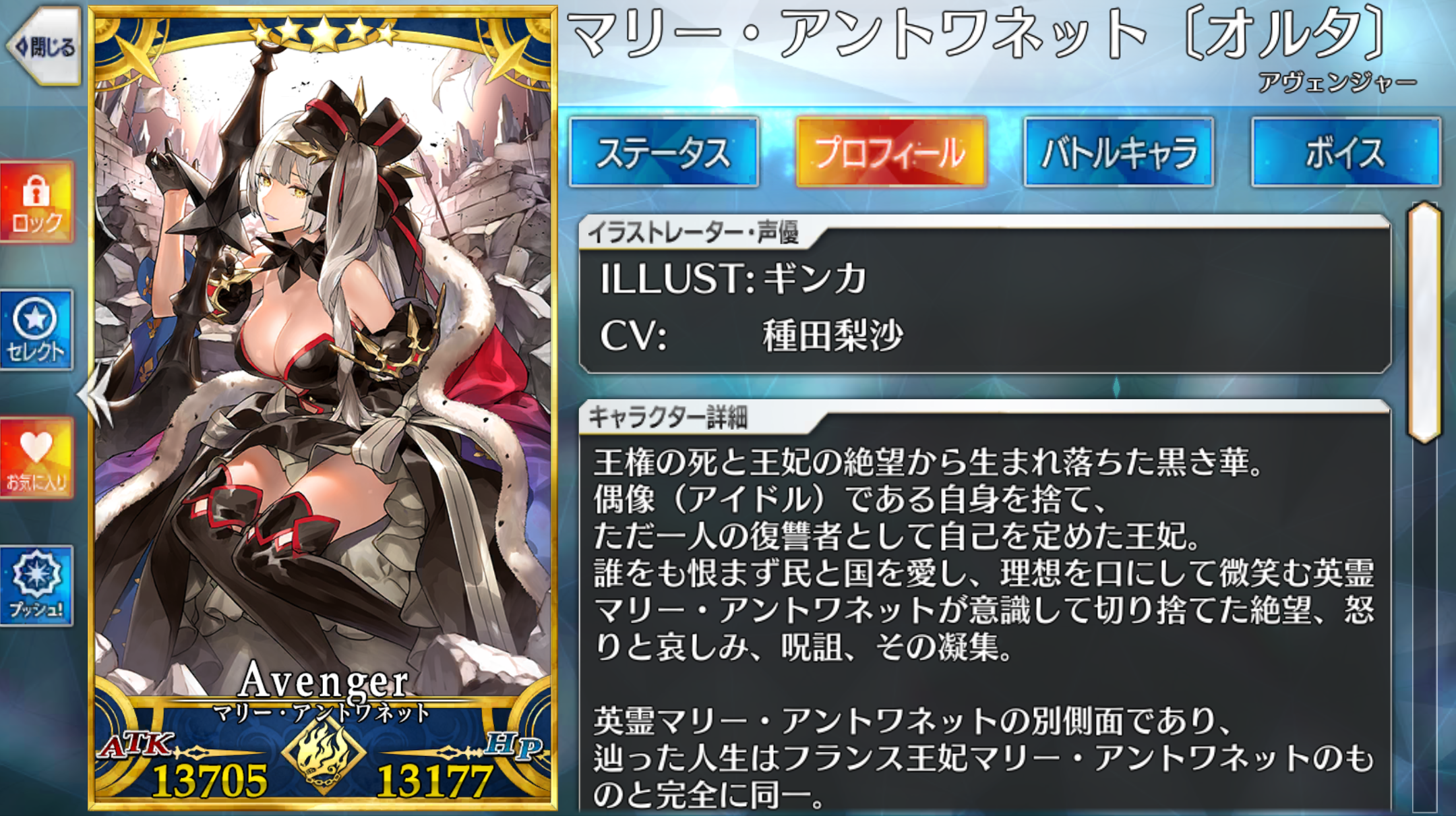 | 地、混沌、悪、女 サーヴァント、人型 、ヒト科 | ||||||||||||
