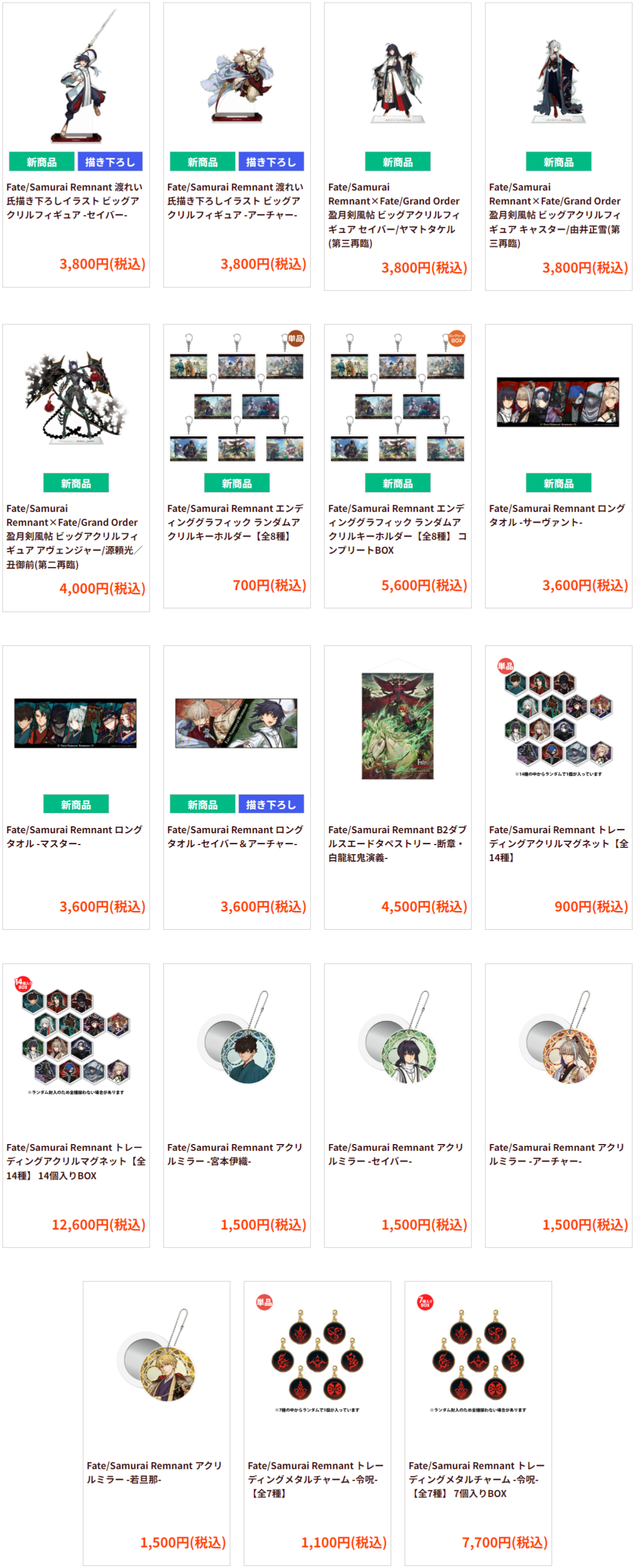 『Fate/Samurai Remnant』関連商品、通販サイトにて受注開始!