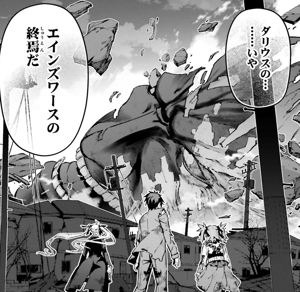 自分たちの世界が壊滅の危機だというのに守護者も呼び出さないで何やってるんだ世界は。美遊が機転を利かして無理矢理サーヴァント召喚したおかげで倒せたものの全部終わってから修正するじゃん。