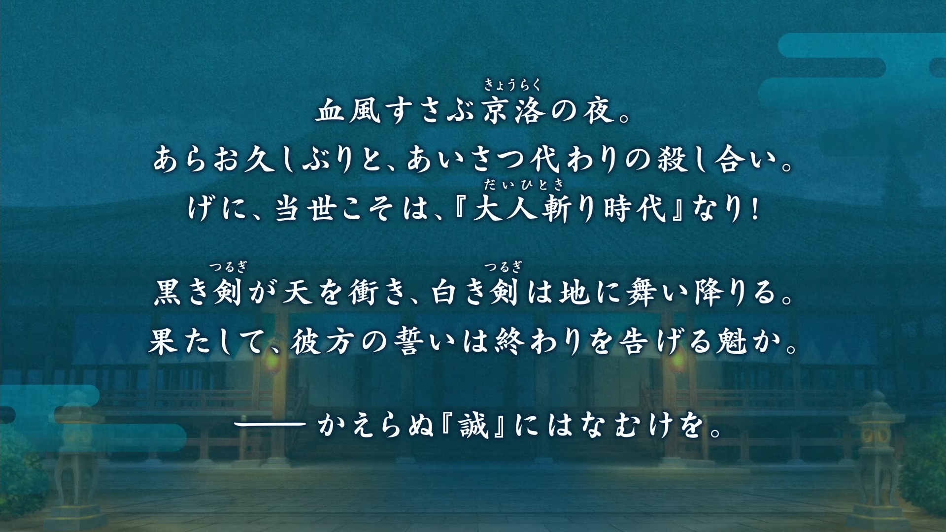 血風すさぶ京洛の夜。人斬りどもが跋扈する修羅の巷に、己が振るうべき一太刀を、今、抜き放つ!
