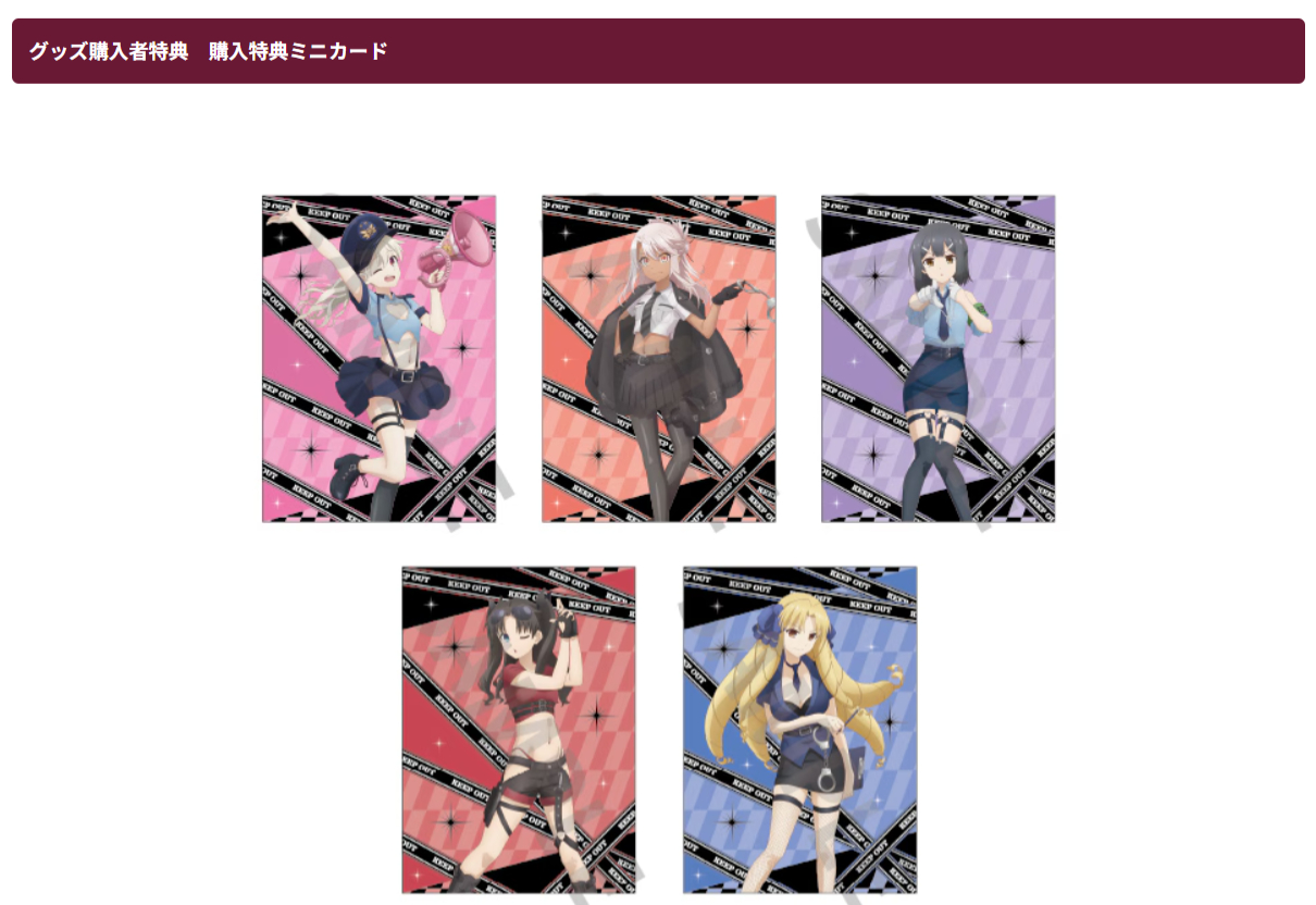 これで何度目になるかわからないプリヤ&ドンキホーテコラボ、他はともかく凛の格好はどういうことなんだろ…とても警察には見え、見えるかなぁ…?