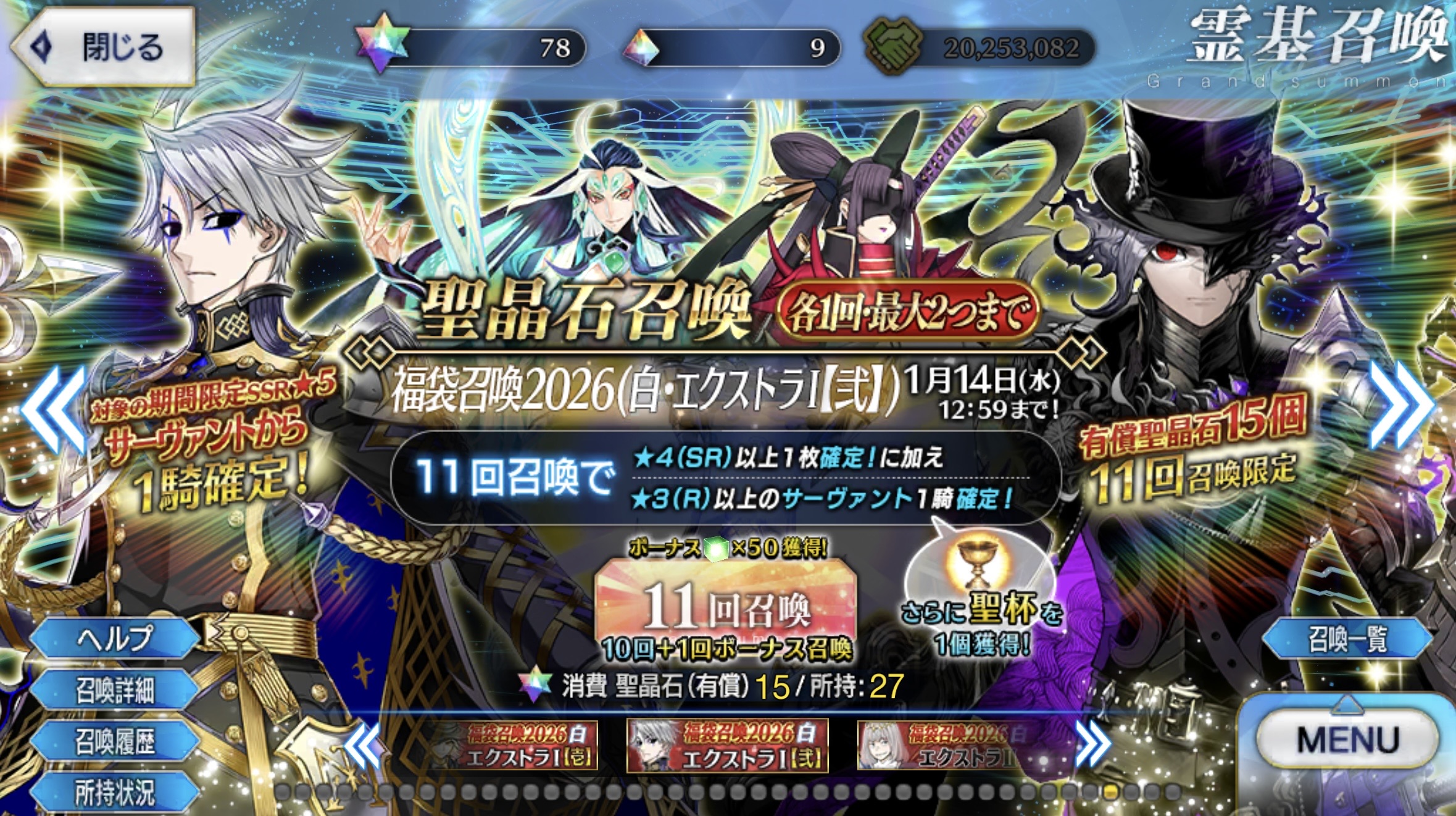 「2026年お正月福袋召喚(白・アーチャー【壱】)」!この10年今まで迎える気が一切なかったギルガメッシュを狙撃ち。未所持のギルかオリオンが出てきてくれたら最高です 2026年01月01日 カテゴリ:ガチャ 続きを読む
