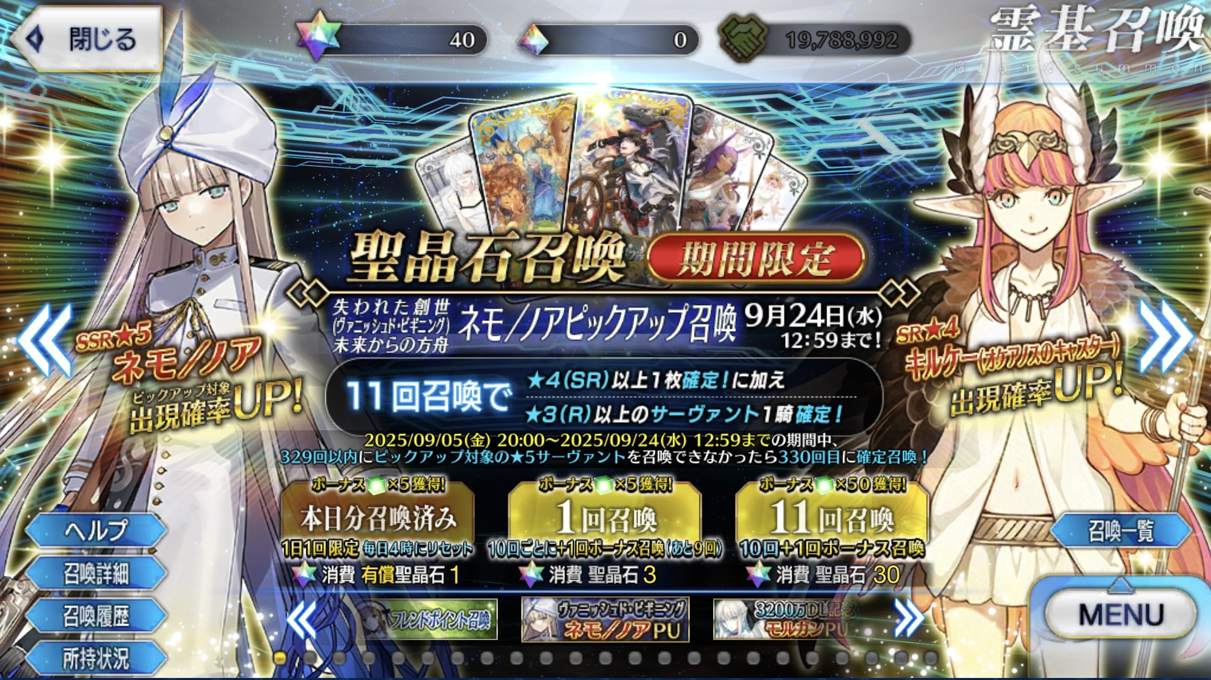 「失われた創世(ヴァニッシュド・ビギニング) 未来からの方舟 ネモ/ノアピックアップ召喚」!ノアよりまず礼装を出さねばならぬ。ノアは出たらラッキーって感じで。 2025年09月06日 カテゴリ:ガチャ 続きを読む