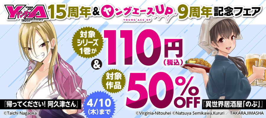 「ヤングエース15周年&ヤングエースUP9周年フェア」が開催。電子書籍の対象シリーズ1巻が110円&50%OFF!TYPE-MOON作品は9作品が対象。 2025年03月28日 カテゴリ:書籍情報 続きを読む