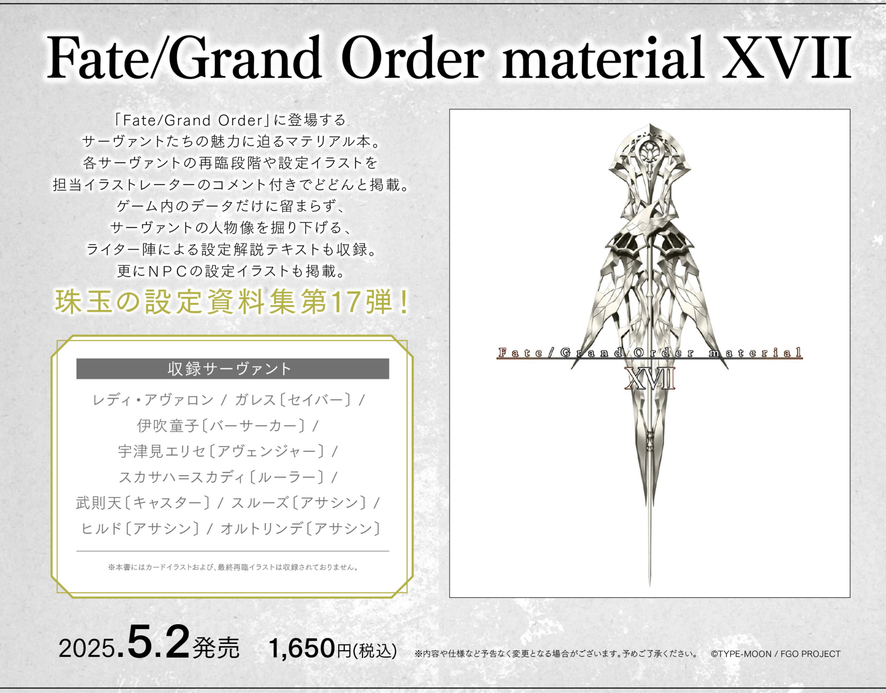 TYPE-MOON BOOKS 新刊情報「ロード・エルメロイⅡ世の冒険9 星冠密議グランド・ロール(1)」「Fate/Grand Order material XⅥ」が2024年12月30日(月)に発売予定。 2024年12月05日 カテゴリ:C105書籍情報 続きを読む