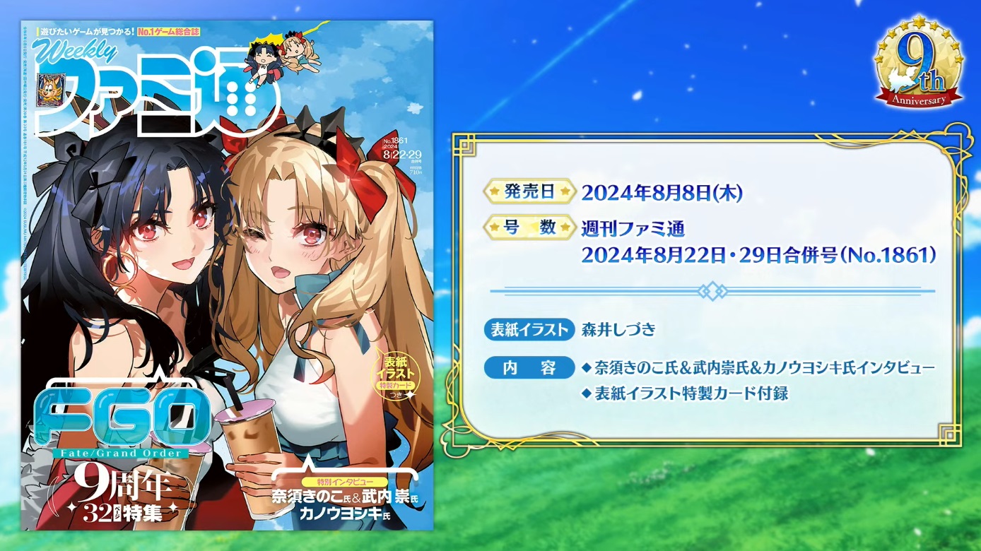 週刊ファミ通『FGO』9周年特集号が8月8日に発売。表紙はイシュタル&エレシュキガル!付録に表紙イラストの特製カード!奈須きのこ氏、武内崇氏、カノウ氏のSPインタビューを掲載 2024年08月05日 カテゴリ:書籍情報 続きを読む