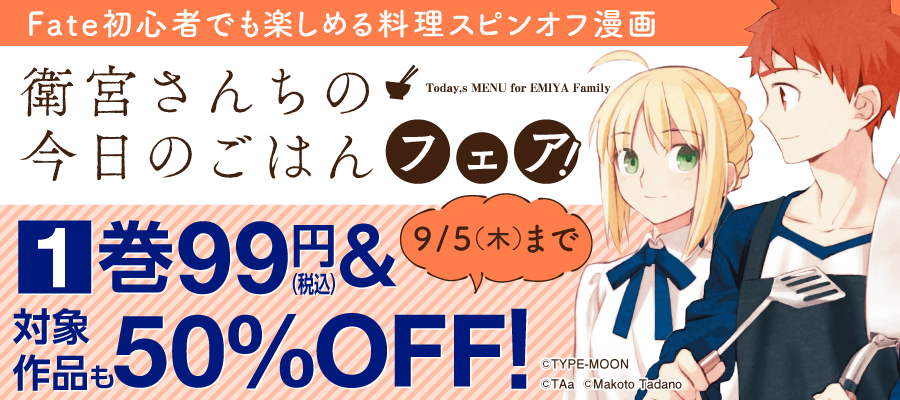 TYPE-MOON関連の電子書籍を「1巻を99円&2巻以降を50%OFF」で購入できる『FGO9周年!TYPE-MOONフェア』が開催!対象のTYPE-MOONの電子書籍をお得に購入できる! 2024年08月02日 カテゴリ:書籍情報 続きを読む