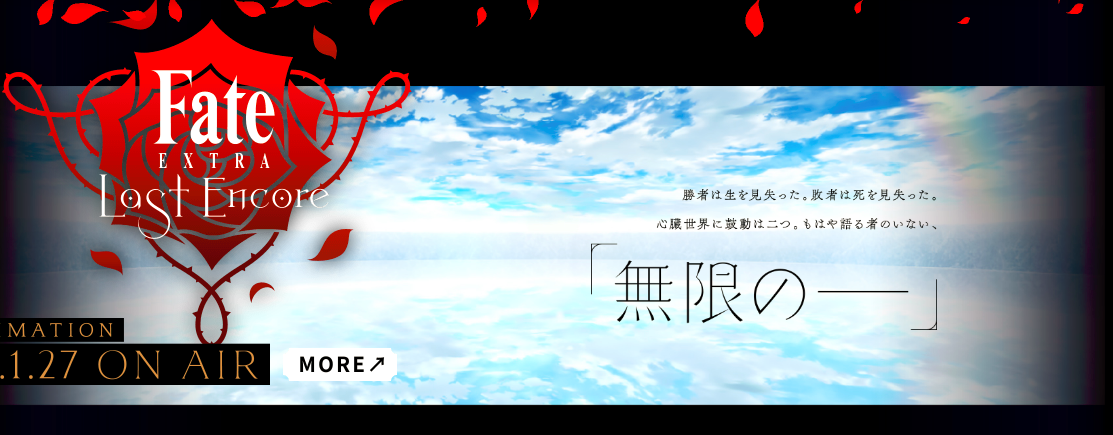 【明日11時締切】1/27開催「Fate/EXTRA Last Encore」先行上映会の先行抽選販売が開始。ゲストに丹下桜さん・阿部敦さん・植田佳奈さんが登壇 2018年01月11日 カテゴリ:Fate/EXTRA 続きを読む