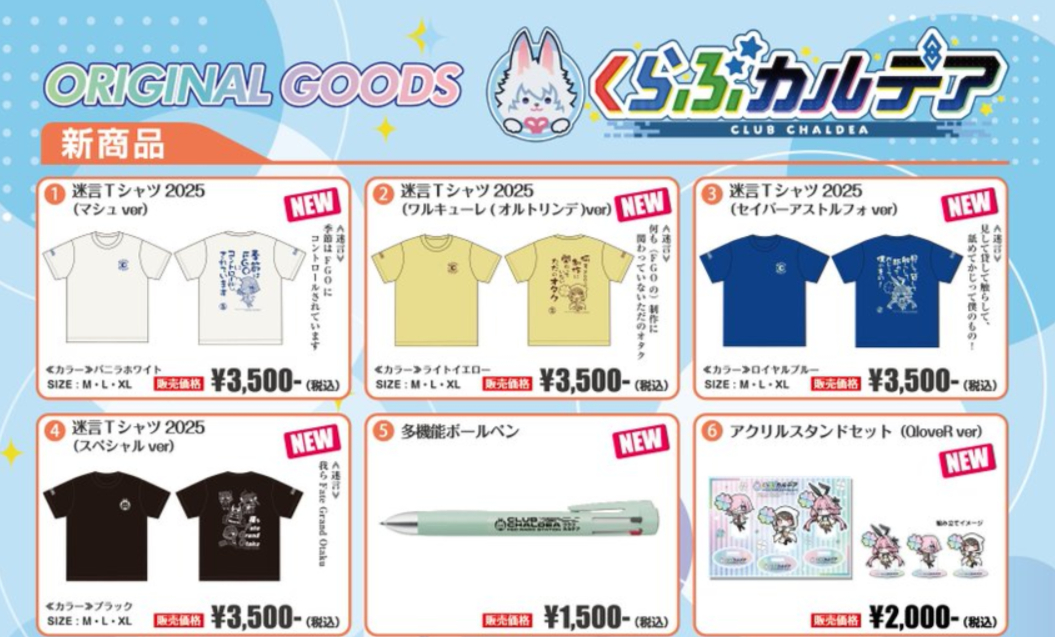『Fate/Grand Order Fes. 2025 ~10th Anniversary~』で販売する「くらぶカルデア FGOラジオステーション」番組グッズの商品ラインナップが公開