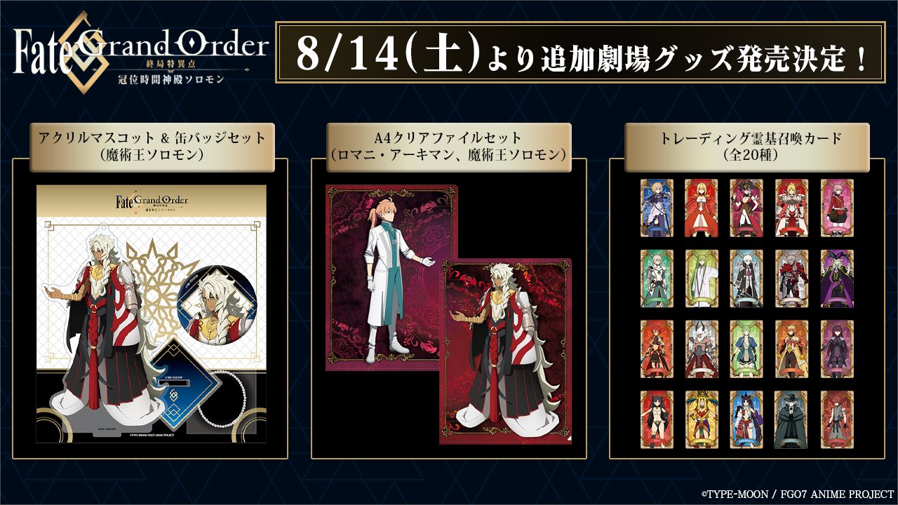 「Fate/Grand Order -終局特異点 冠位時間神殿ソロモン-」劇場グッズの事後通販が開始!さらに事後通販限定商品「階位付与キャラファイングラフ」「霊基召喚スクエア缶マグネット」が登場! 2021年09月12日 カテゴリ:冠位時間神殿ソロモン 続きを読む