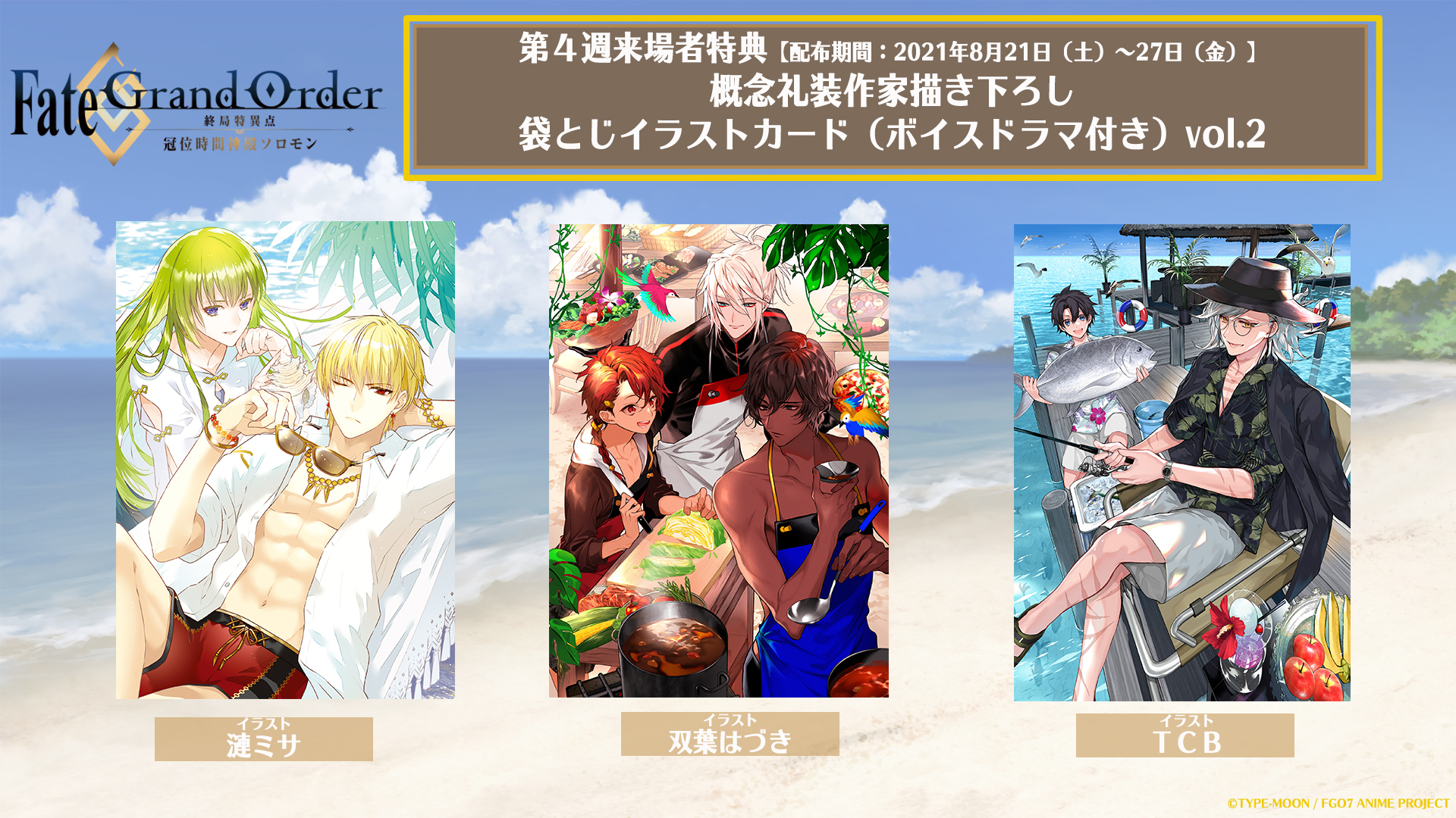『FGO終局特異点 冠位時間神殿ソロモン』 第4週来場者特典は「概念礼装作家描き下ろし袋とじイラストカード(ボイスドラマ付き)vol.2(3種ランダム)」に決定!特典の紹介映像も公開 2021年08月17日 カテゴリ:冠位時間神殿ソロモン 続きを読む