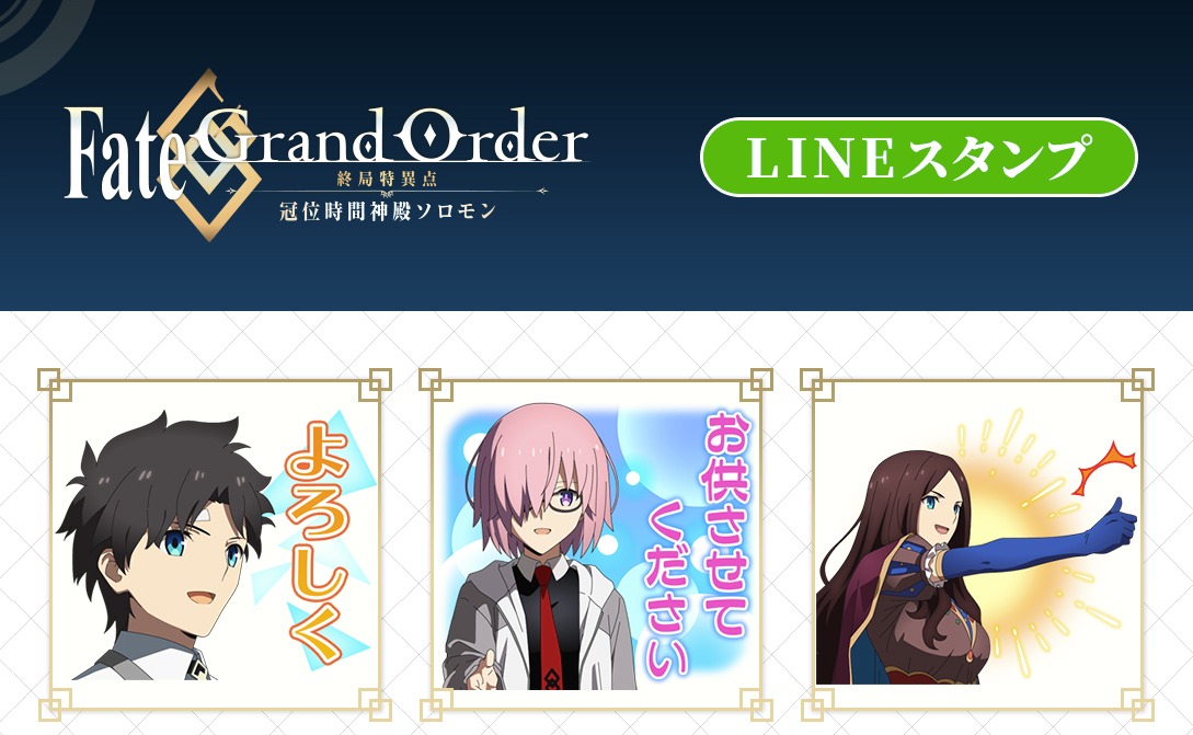 『Fate/Grand Order -終局特異点 冠位時間神殿ソロモン-』LINE公式スタンプが発売!劇場で活躍したキャラ達を是非友人とのやり取りに。 2021年08月31日 カテゴリ:冠位時間神殿ソロモン 続きを読む