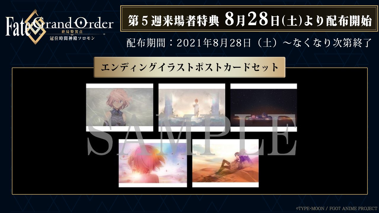『Fate/Grand Order終局特異点 冠位時間神殿ソロモン』 第5週来場者特典は「エンディングイラストポストカードセット」に決定! 2021年08月25日 カテゴリ:冠位時間神殿ソロモン 続きを読む