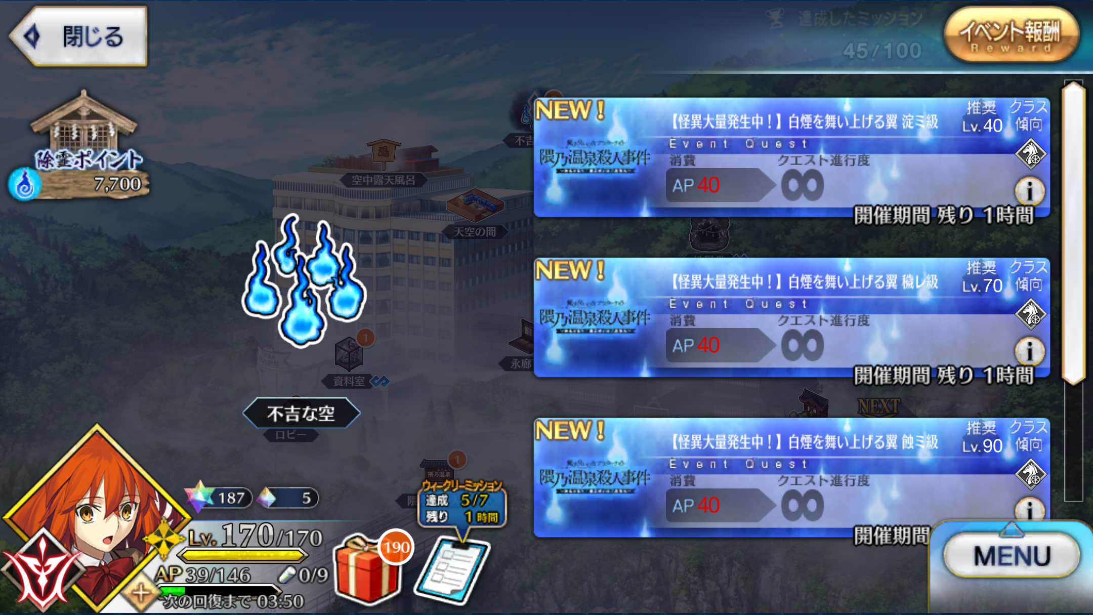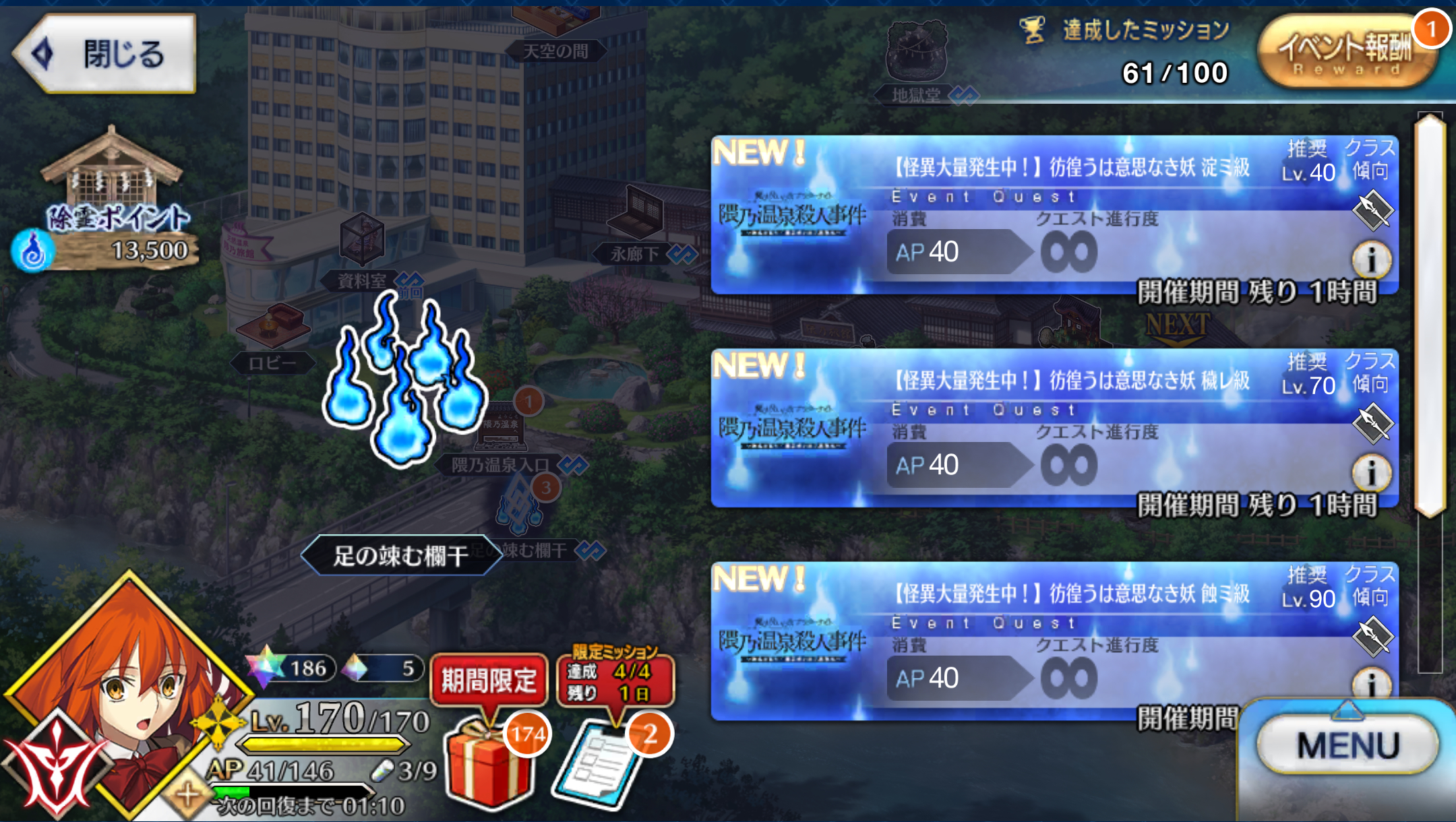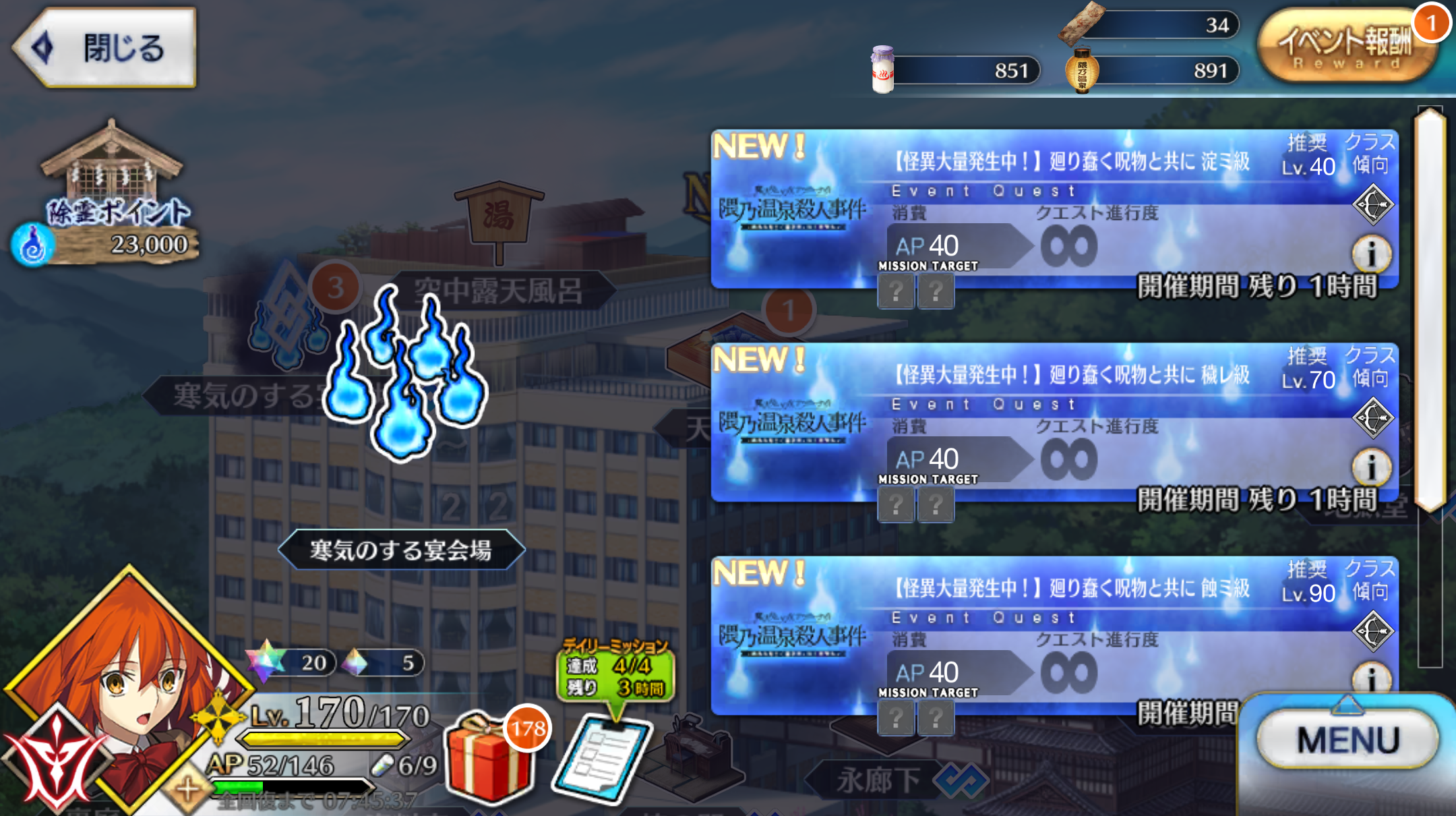 「魔法使いの夜アフターナイト/隈乃温泉殺人事件 ~駒鳥は見た! 魔法使いは二度死ぬ~」21時から23時までのゲリラクエスト「異形異類も混浴したい」が解禁! 2024年05月02日 カテゴリ:FGOイベント 続きを読む