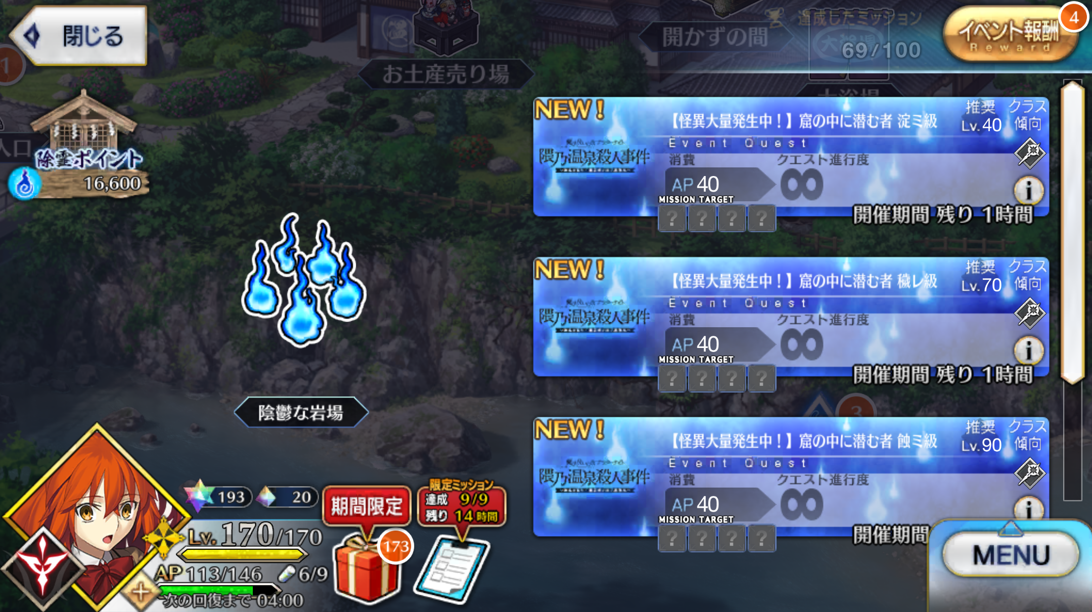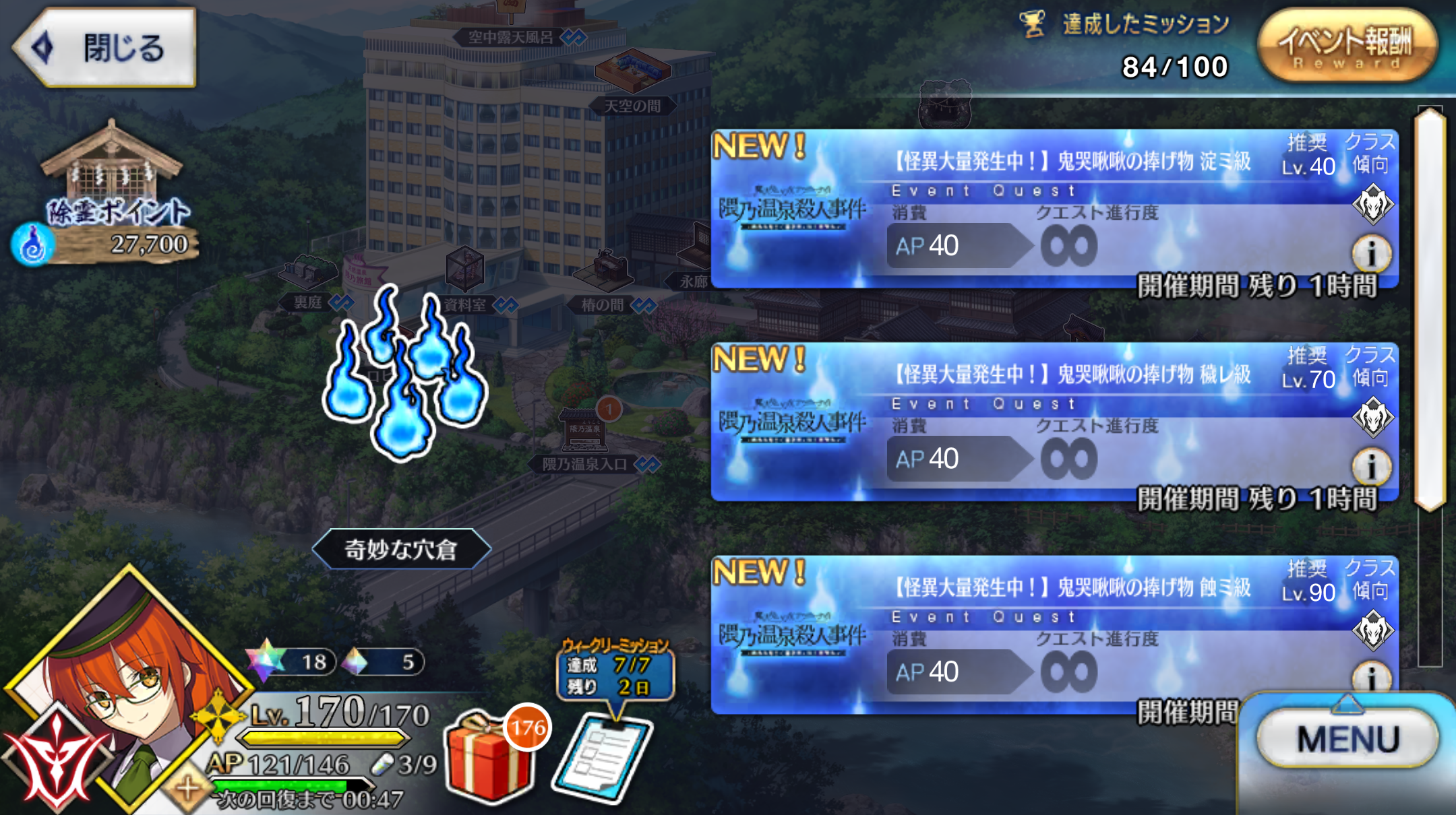 「魔法使いの夜アフターナイト/隈乃温泉殺人事件 ~駒鳥は見た! 魔法使いは二度死ぬ~」22時から24時までのゲリラクエスト「窟の中に潜む者」が解禁! 2024年04月30日 カテゴリ:FGOイベント 続きを読む