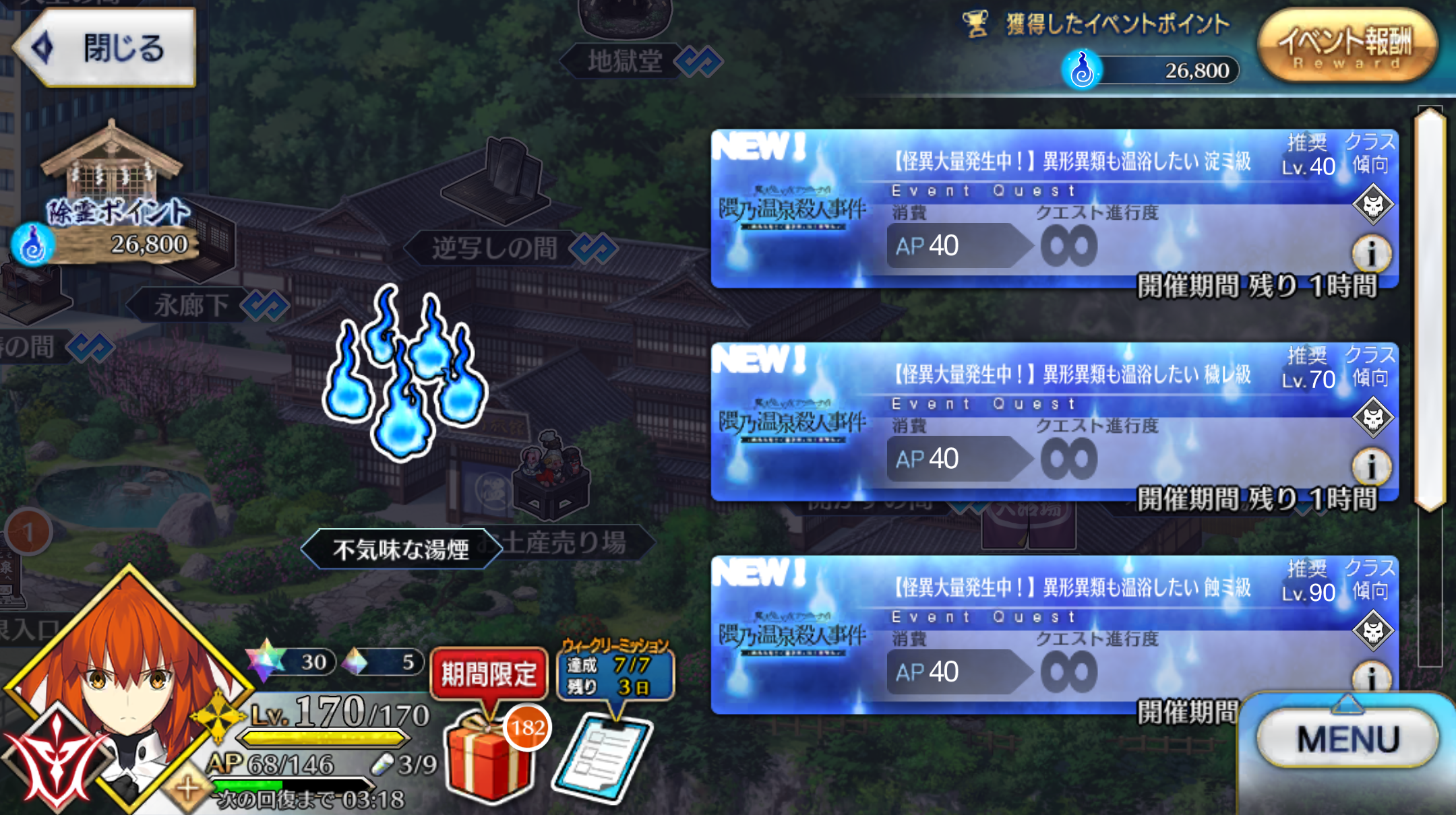 「魔法使いの夜アフターナイト/隈乃温泉殺人事件 ~駒鳥は見た! 魔法使いは二度死ぬ~」20時から22時までのゲリラクエスト「鬼哭啾啾の捧げ物」が解禁! 2024年05月03日 カテゴリ:FGOイベント 続きを読む