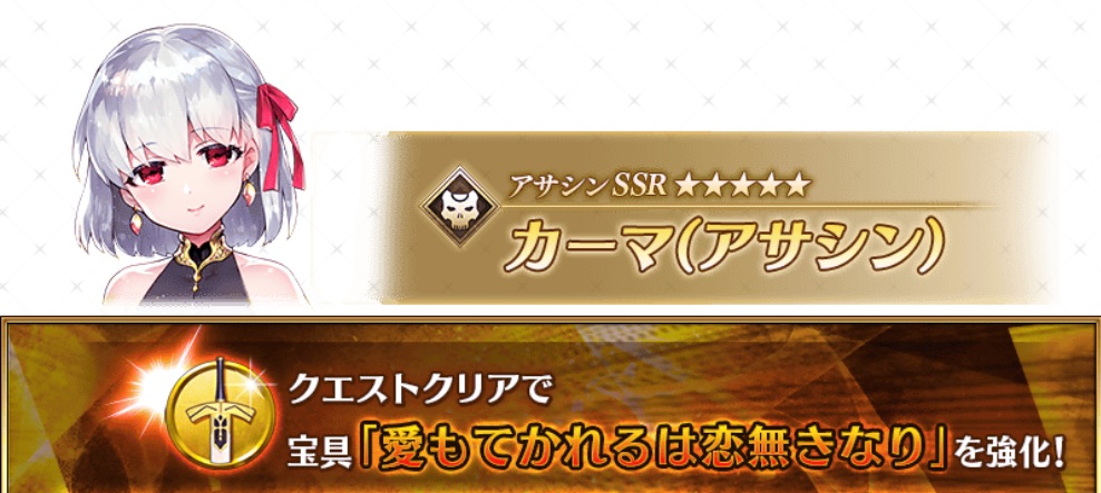 『「奏章Ⅰ」クリア応援キャンペーン カーマ(アサシン)ピックアップ召喚』が開催!「★5(SSR)カーマ(アサシン)」「★4(SR)蘭陵王」の強化クエストが追加! 2025年01月13日 カテゴリ:Fate/Grand Order幕間の物語・強化クエスト 続きを読む