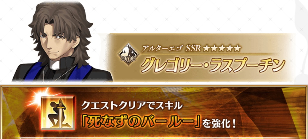 『「Lostbelt No.7」クリア応援キャンペーン グレゴリー・ラスプーチンピックアップ召喚』が開催!「★5(SSR)グレゴリー・ラスプーチン」がピックアップと強化クエストが追加! 2024年12月05日 カテゴリ:Fate/Grand Order幕間の物語・強化クエスト 続きを読む