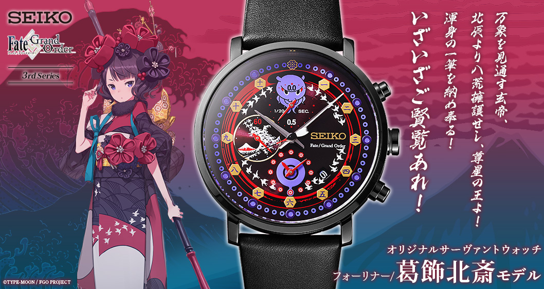 『SEIKO×FGO』コラボレーション「オリジナルサーヴァントウォッチ」<フォーリナー/葛飾北斎モデル>が予約開始。特徴的な着物の柄や和のテイストを時計で再現。盤面にはとと様の姿も! 2022年06月01日 カテゴリ:商品情報 続きを読む タグ :#FGO